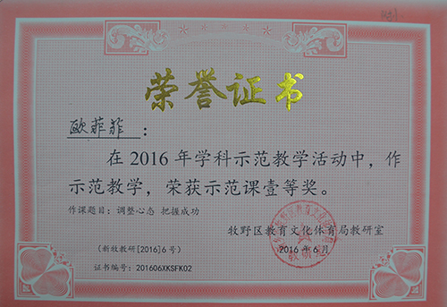 我校欧菲菲老师荣获牧野区示范课一等奖