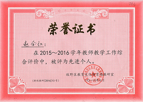 我校赵金红、李萌两位老师获区教学工作综合评价先进个人