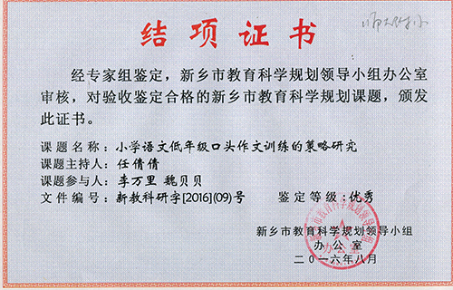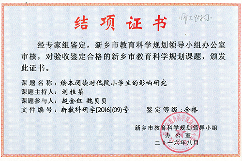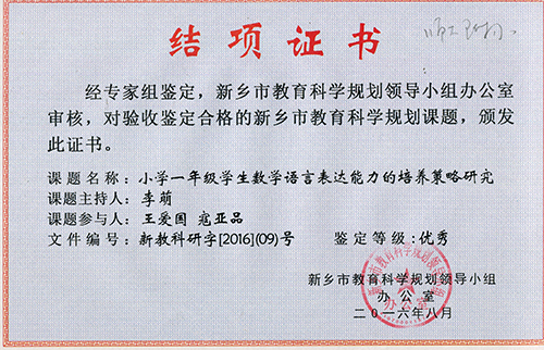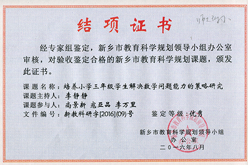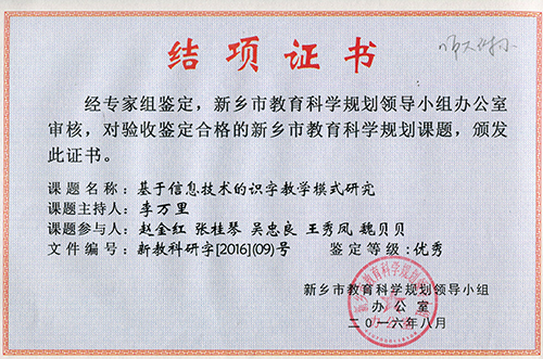 经专家组鉴定,新乡市教育科学规划领导小组办公室审核,我校共有:李万里、李静静、任倩倩、刘桂荣、李萌。