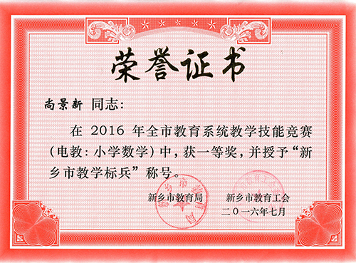 我校尚景新老师获2016年全市教育系统教学技能竞赛荣获一等奖