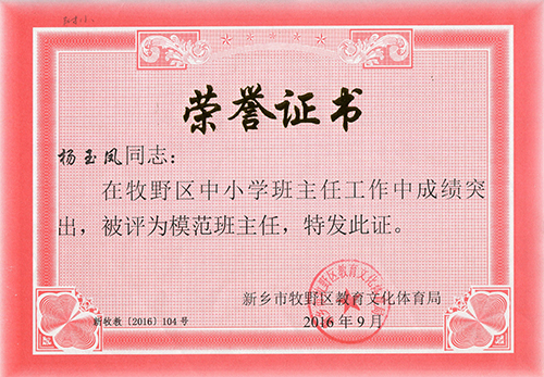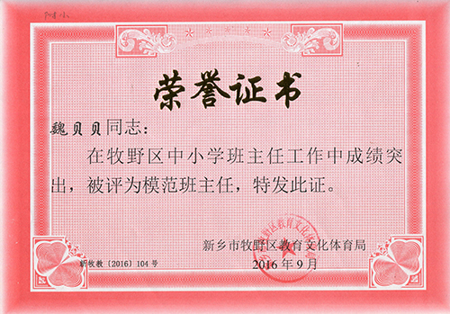 我校杨玉凤、魏贝贝两位老师被评为牧野区模范班主任