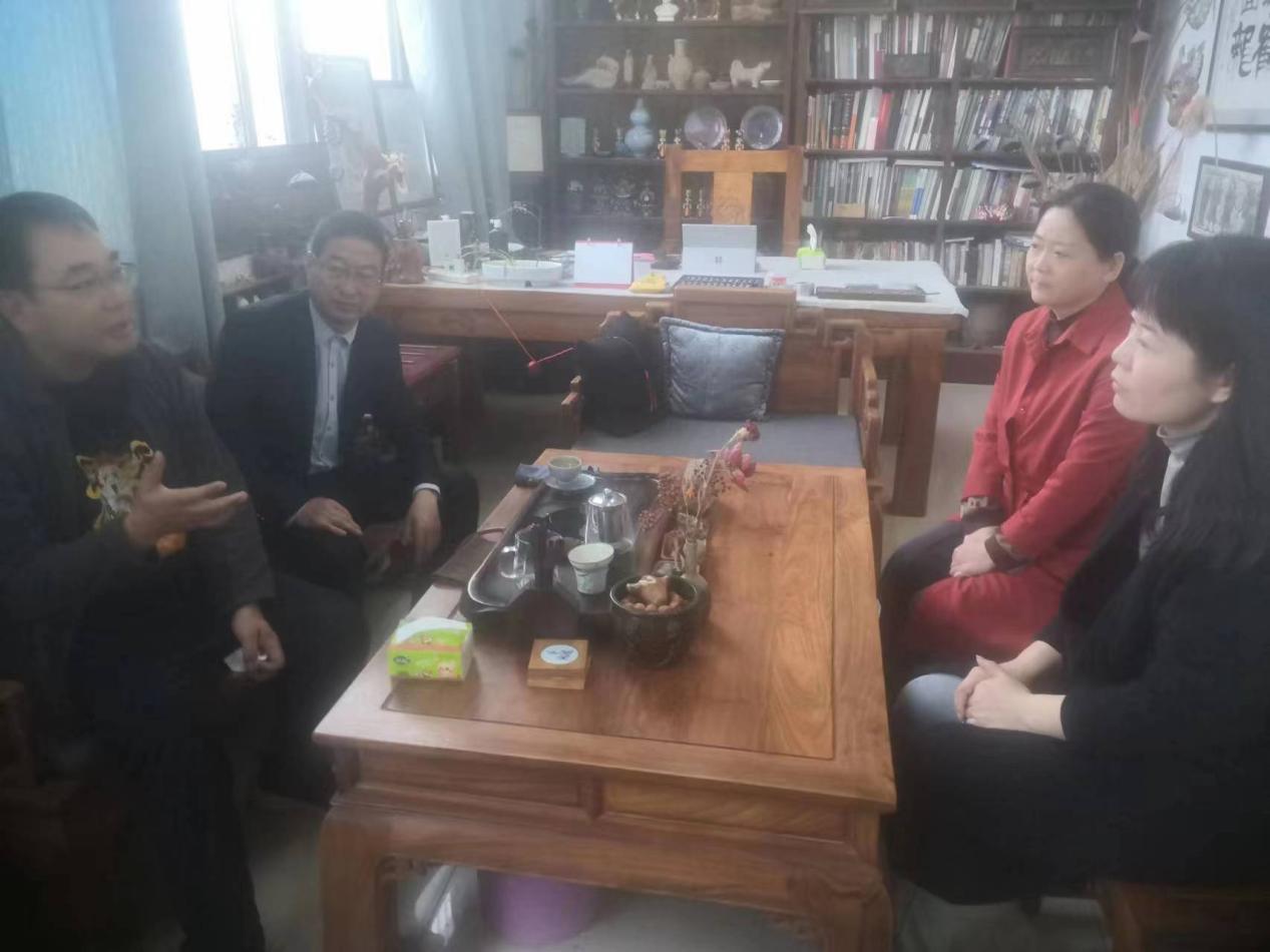 孙红艳书记接待了我们,详细介绍了美术学院目前河南省中华优秀文化基地建设、河南木板年画传承推广基地建设、国培教师培训以及学院未来设想。