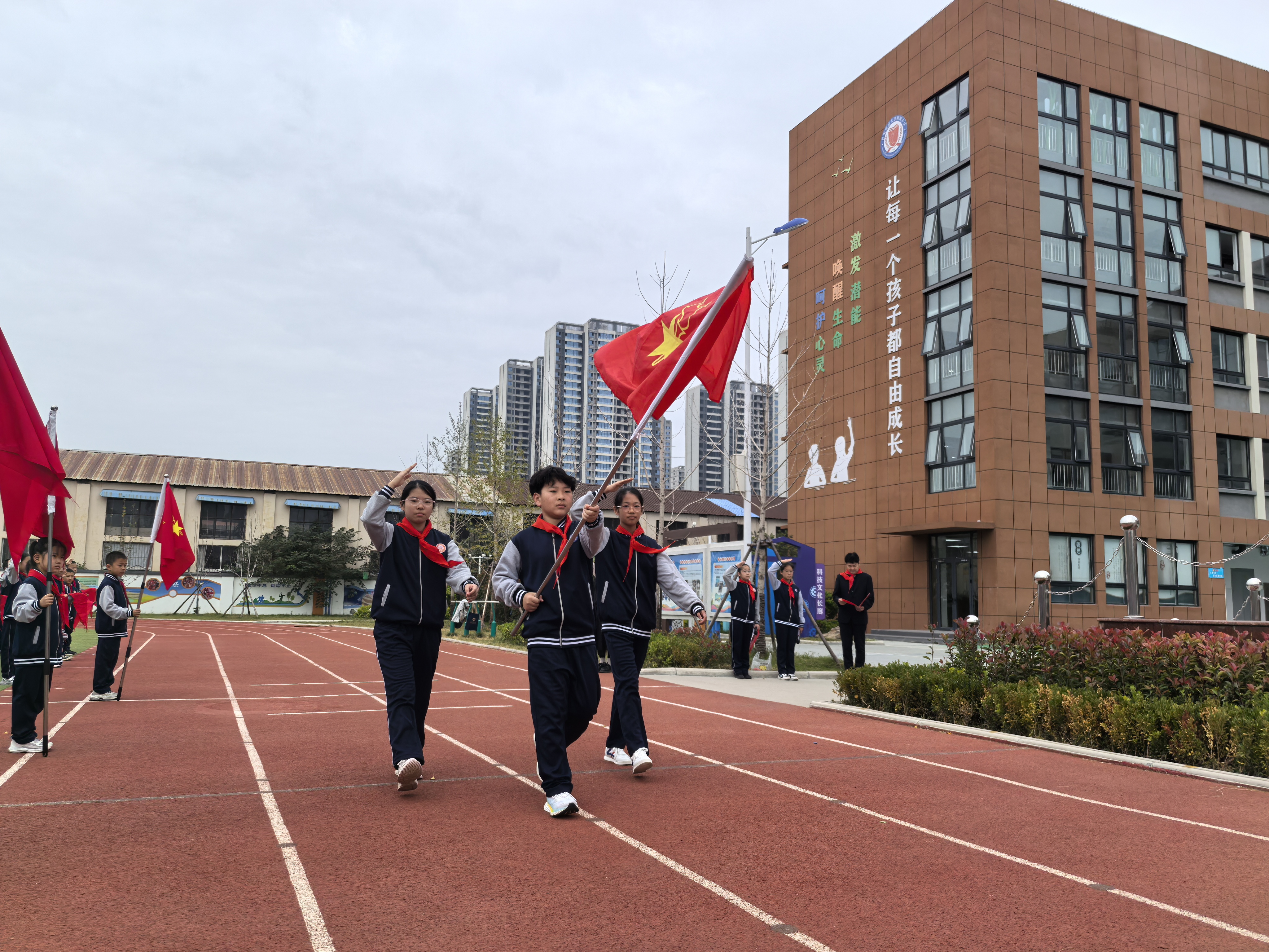仪式在雄壮的《出旗曲》中拉开帷幕。旗手们精神抖擞,手擎中国少年先锋队队旗,迈着铿锵有力的步伐入场。旗帜引领方向,旗帜凝聚力量,庄严与自豪之情在现场每一位师生心中激荡。