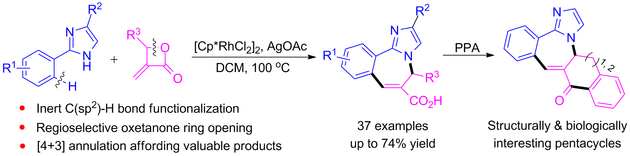 7). Yuanshuang Xu, Linghua Zhang, Mengyang Liu, Xiaopeng Zhang, Xinying Zhang* and Xuesen Fan.* Synthesis of benzoazepine derivatives via Rh(III)-catalyzed inert C(sp2)-H functionalization and [4 + 3] annulations. Org. Biomol. Chem. 2019, 17 (38), 8706-8710.
