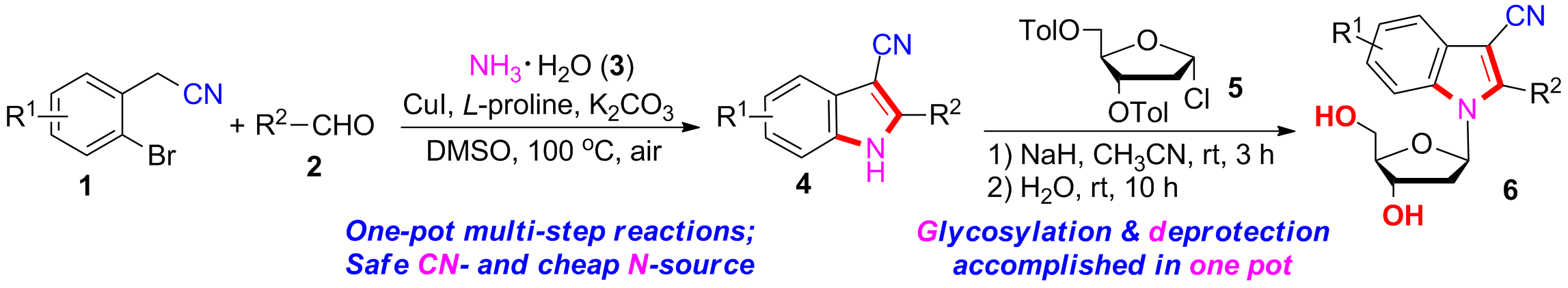 6). Bin Li, Beibei Zhang, Xinying Zhang*, and Xuesen Fan*. Synthesis of 3-Cyano-1H-indoles and Their 2′-Deoxyribonucleoside Derivatives through One-Pot Cascade Reactions. J. Org. Chem., 2016, 81 (20), 9530-9538.