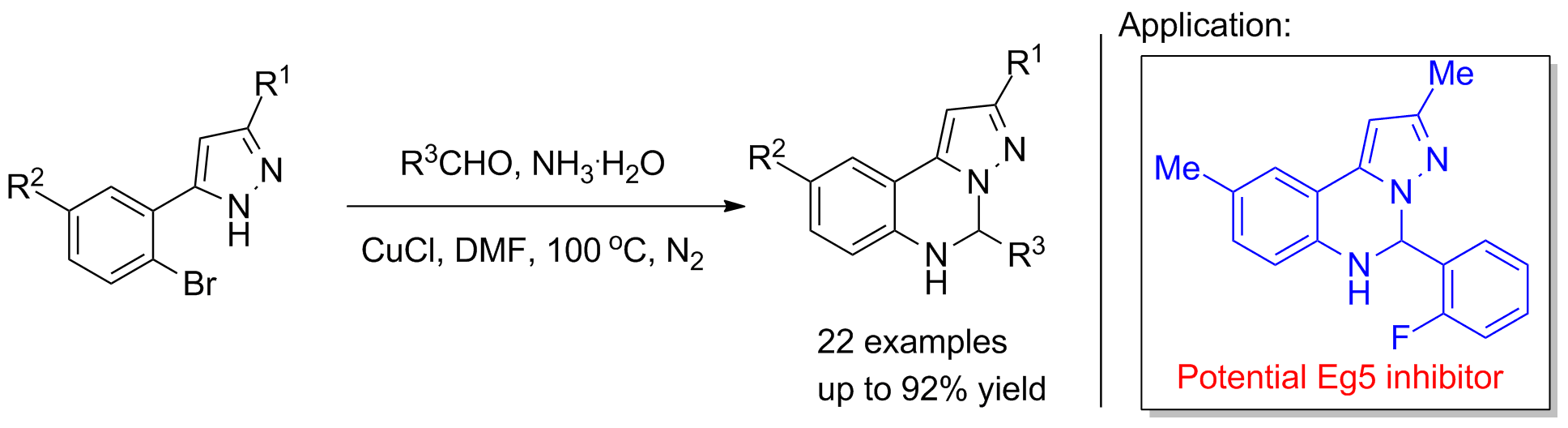 14) Shenghai Guo*, Jiliang Wang, Yan Li, Xuesen Fan*, CuCl-catalyzed one-pot synthesis of 5,6-dihydropyrazolo[1,5-c]quinazolines. Tetrahedron, 2014, 70 (14), 2383-2388.