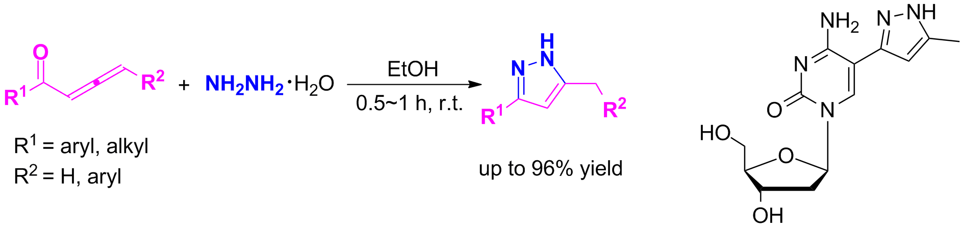 5) Shenghai Guo*, Jiliang Wang, Dongqiang Guo, Xinying Zhang, Xuesen Fan*. Synthesis of 3,5- disubstituted pyrazoles via cyclocondensation of 1,2-allenic ketones with hydrazines: application to the synthesis of 5-(5-methyl-pyrazol-3-yl)-2'-deoxycytidine. RSC Adv., 2012, 2(9), 3772-3777.