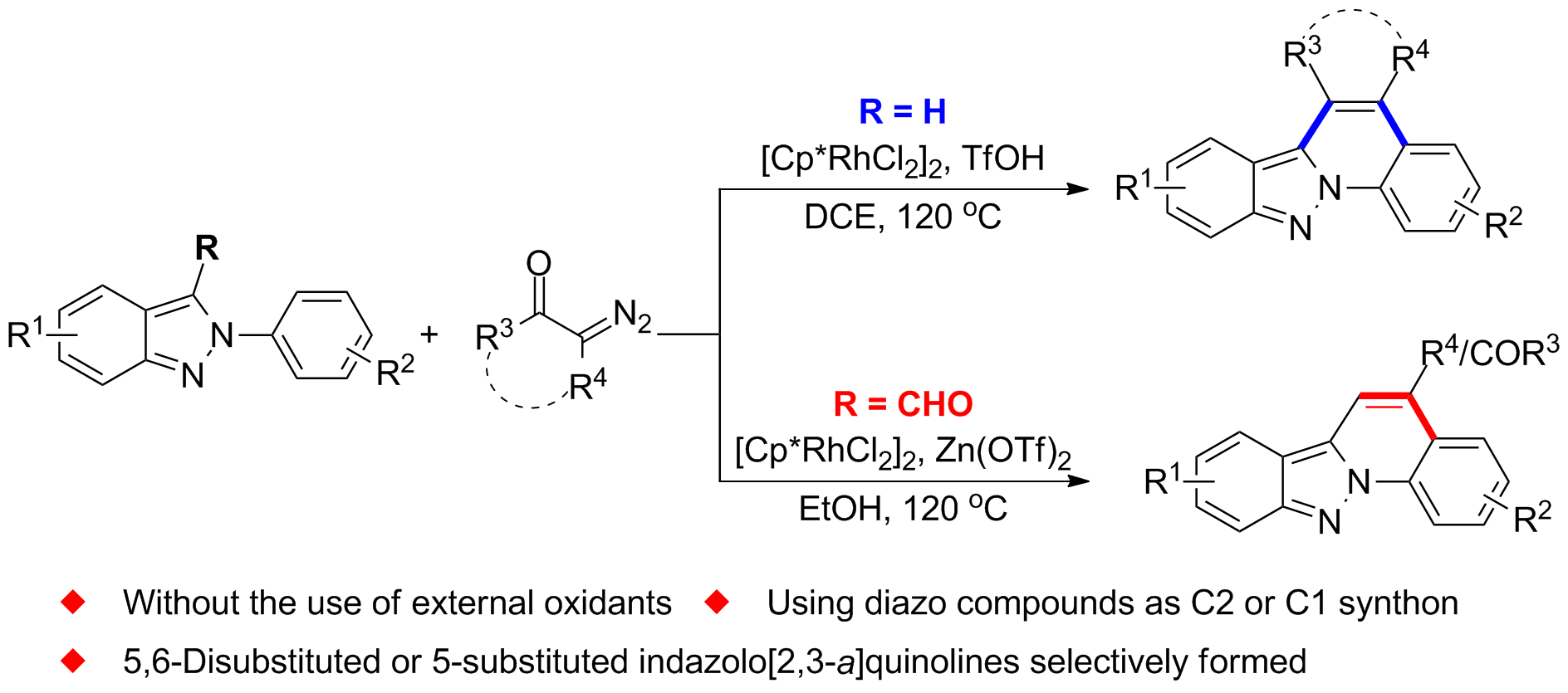 10) Shenghai Guo,* Lincong Sun, Xuzhuo Li, Xinying Zhang, Xuesen Fan*.Selective Synthesis of Indazolo[2,3-a]quinolines via Rh(III)-Catalyzed Oxidant-Free [4+2] or [5+1] Annulation of 2-Aryl-2H-indazoles with α-Diazo Carbonyl Compounds. Adv. Synth. Catal. 2020, 362, 913-926.
