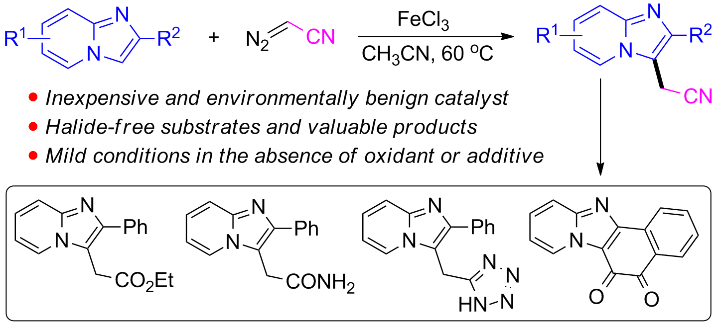 3) Guang Chen, Bin Li, Bing Hu, Xinying Zhang,* Xuesen Fan*. FeCl3-catalyzed C-3 functionalization of imidazo[1,2-a]pyridines with diazoacetonitrile under oxidant- and ligand-free conditions. Tetrahedron Lett., 2020, doi: 10.1016/j.tetlet.2020.151774.