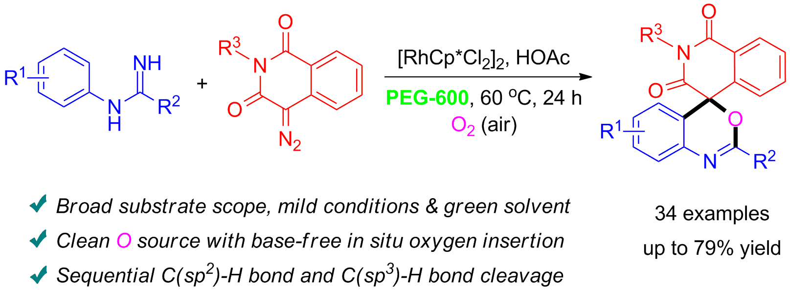 2) Qianting Zhou, Xia Song, Xinying Zhang,* Xuesen Fan.* Synthesis of Spiro[benzo[d][1,3]oxazine-4,4 '-isoquinoline]s via [4+1+1] Annulation of N-Aryl Amidines with Diazo Homophthalimides and O2. Org. Lett. 2022, 24(6), 1280-1285.
