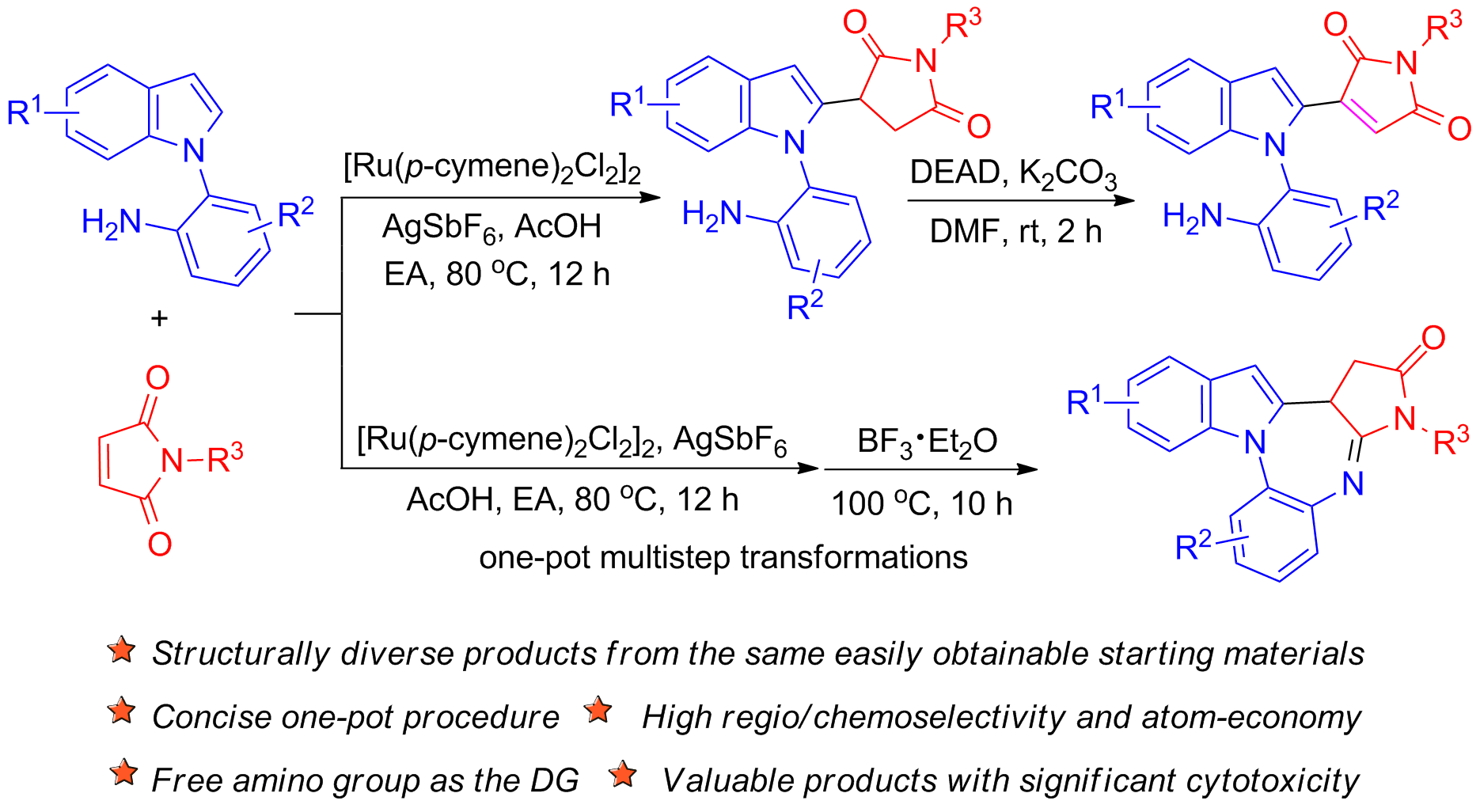 6) Chunhua Ma, Yue Wang, Guang Chen, Jingyi Li, Yuqin Jiang, Xinying Zhang*, Xuesen Fan.* Divergent construction of 3-(indol-2-yl)succinimide/maleimide and fused benzodiazepine skeletons from 2-(1H-indol-1-yl)anilines and maleimides. Org. Chem. Front. 2022, 9 (17), 4663-4669.