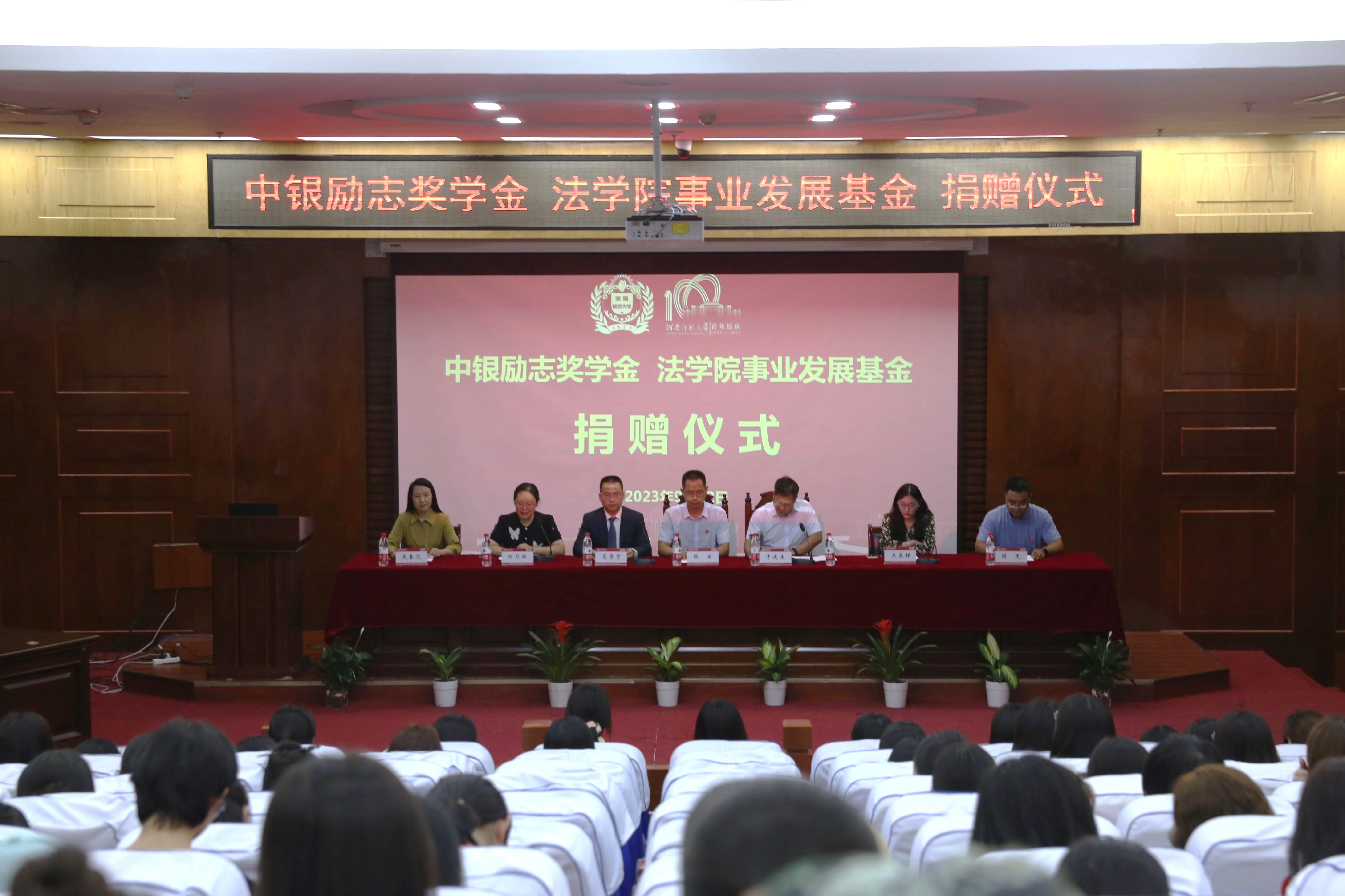 9月22日下午,中银励志奖学金、法学院事业发展基金捐赠仪式在模拟法庭举行。北京中银(深圳)律师事务所高级合伙人高景贺,郑州市玉君山文化传播有限公司党支部书记王美静,学院领导班子成员及部分师生参加捐赠仪式。仪式由院党委副书记田月红主持。