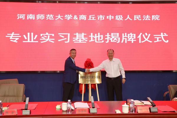 会上,秦法跃与杨飞共同签署《河南师范大学专业实习基地建设协议书》,法学院党委书记张壬和陈晓辉共同签署《河南师范大学与商丘市中级人民法院卓越法治人才联合培养合作框架协议》,秦法跃与杨飞共同为“河南师范大学专业实习基地”揭牌。