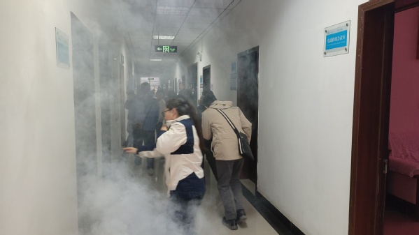培训结束后,师生在崇法楼进行消防应急疏散演练。听到火警报警后,所有师生迅速关闭电源,用湿毛巾捂住口鼻、弯腰俯身,离开房间,楼内所有师生在安全员、负责教师的引导下,迅速撤离至指定地点,同时大家互相帮助,团结协作,展现了出色的团队精神和互助精神,整个疏散演练过程紧张有序。演练结束后,程习伟对本次演练进行了总结,对师生的表现做出了充分肯定,并指出演练中的问题与不足,提出改进意见,同时教职工们也积极反馈了自己的体验和感受,为今后的消防安全工作提供了宝贵的参考意见。