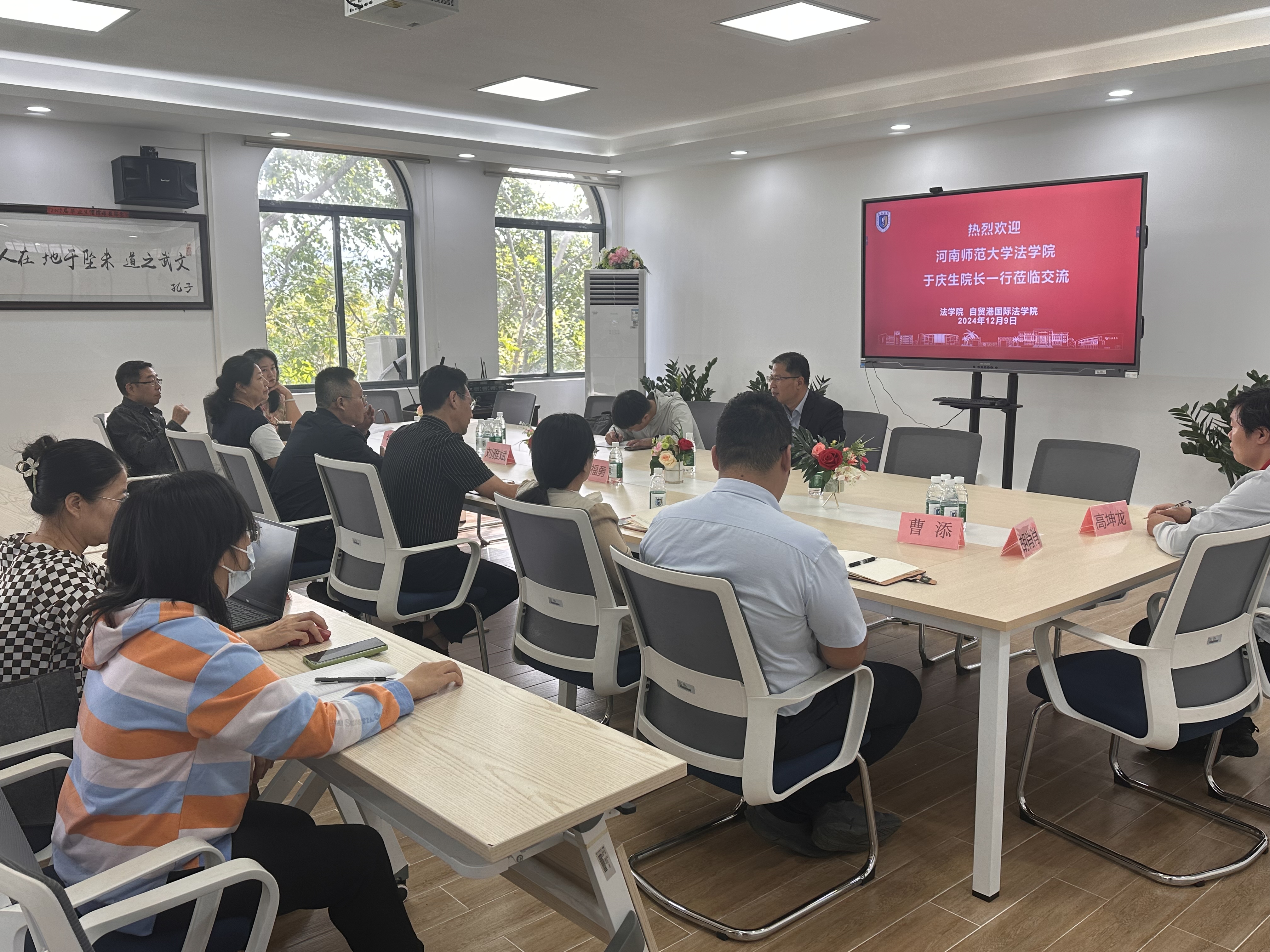 12月9日,法学院院长于庆生一行受邀前往三亚学院法学院、自贸港国际法学院开展交流合作。三亚学院法学院党委书记孟丽娟、院长朱福勇以及其他学院领导班子成员和教师代表参加会谈。