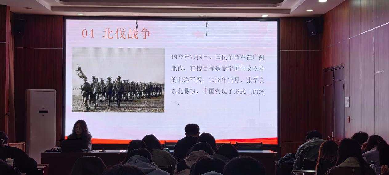 首先,王世哲以抗美援朝战争的历史背景为开篇,与在场同学们回溯抗美援朝时期历史大事件,追忆黄继光、邱少云等民族英雄的先进事迹,进一步激励同学们更加深刻地认识到抗美援朝的意义,并自觉学习、传承伟大的抗美援朝精神。随后,马乐佳带领同学们逐一学习了中国共产党自1921年成立以来经历的每一次考验及召开的重大会议,明确“四史”是指中国共产党以人民为中心谋独立、谋幸福、谋复兴、谋大同的伟大斗争史,点明中国共产党的领导是“四史”的主线。百年党史,浴血征程。同学们纷纷表示,通过此次重温中国共产党的百年芳华,更要奋斗于当下,真正做到学史明理、学史增信、学史崇德、学史力行!