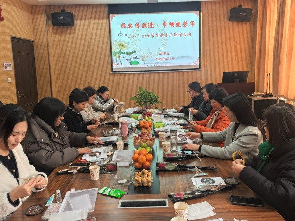 为迎接三八妇女节,丰富学院女教职工的文化生活,3月7日下午,法学院分工会在崇法楼303会议室举办了“指尖传非遗·巾帼绽芳华”掐丝景泰蓝胡桃木杯垫非遗手工制作活动,众多女教职工踊跃参与。