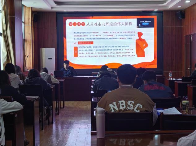 首先,王靖斌结合党的百年奋斗历程,深刻阐释了红色基因的深刻内涵与时代价值。课堂上,通过珍贵的历史影像、革命先辈事迹和新时代榜样故事,引导党员感悟初心使命,筑牢信仰之基。随后,梁硕通过讲述张晋藩教授编撰《中国法制通史》、为民法典基础理论奠基等重大成果背后的故事,展现了老一辈学者严谨治学、矢志报国的家国情怀,同时也强调了张晋藩教授的学术精神与党员品格是宝贵财富,呼吁全体同学应以他为榜样,在推进全面依法治国中勇担重任。