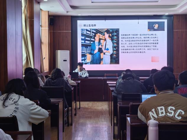 3月26日上午,研究生党支部“党建小课堂”第三十一讲开讲。2023级法学班王靖斌、2024级法律法学班梁硕分别以《传承红色基因,践行时代担当》、《张晋藩教授:法学生涯与贡献》为题进行分享。