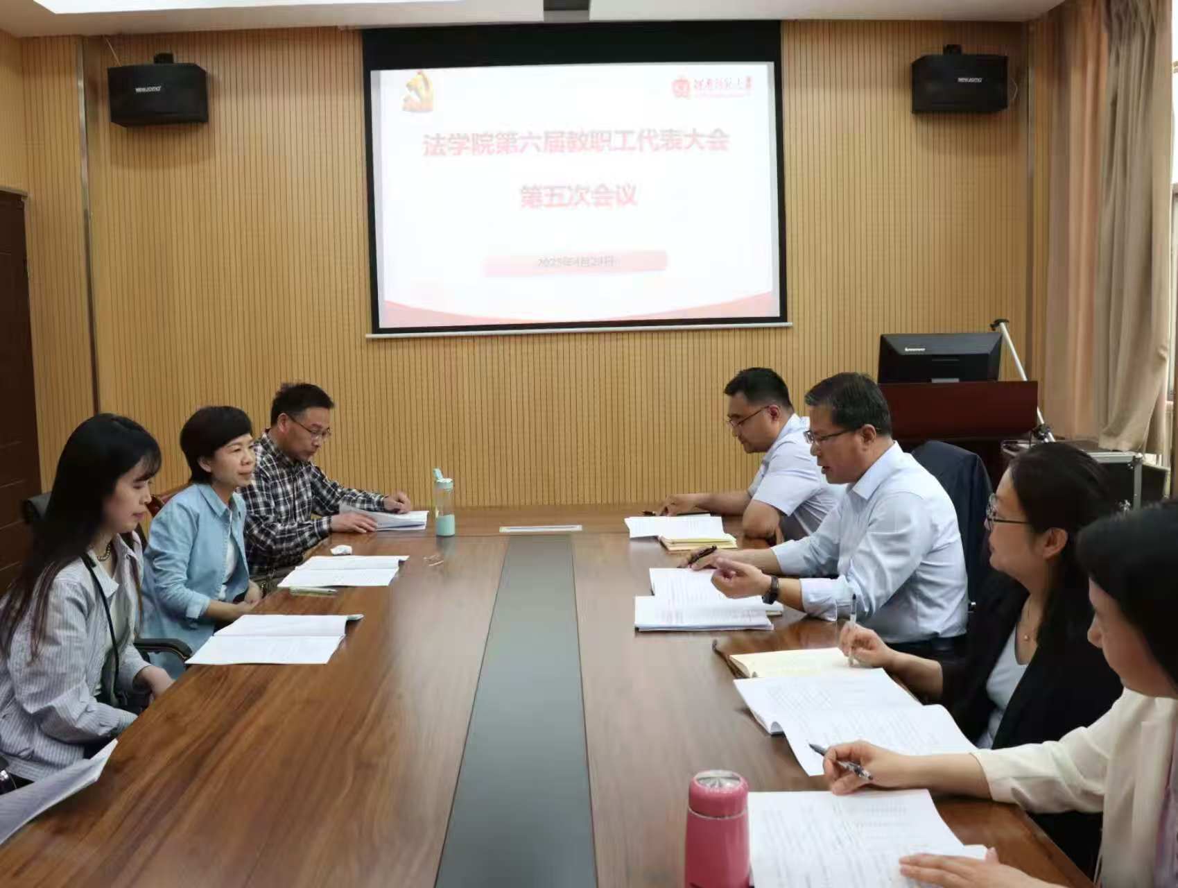 4月29日下午,法学院第六届教职工代表大会第五次会议在崇法楼303会议室举行,会议聚焦《法学院绩效工资实施办法(草案)》审议与表决。会议由学院分工会主席、副院长史春花主持。