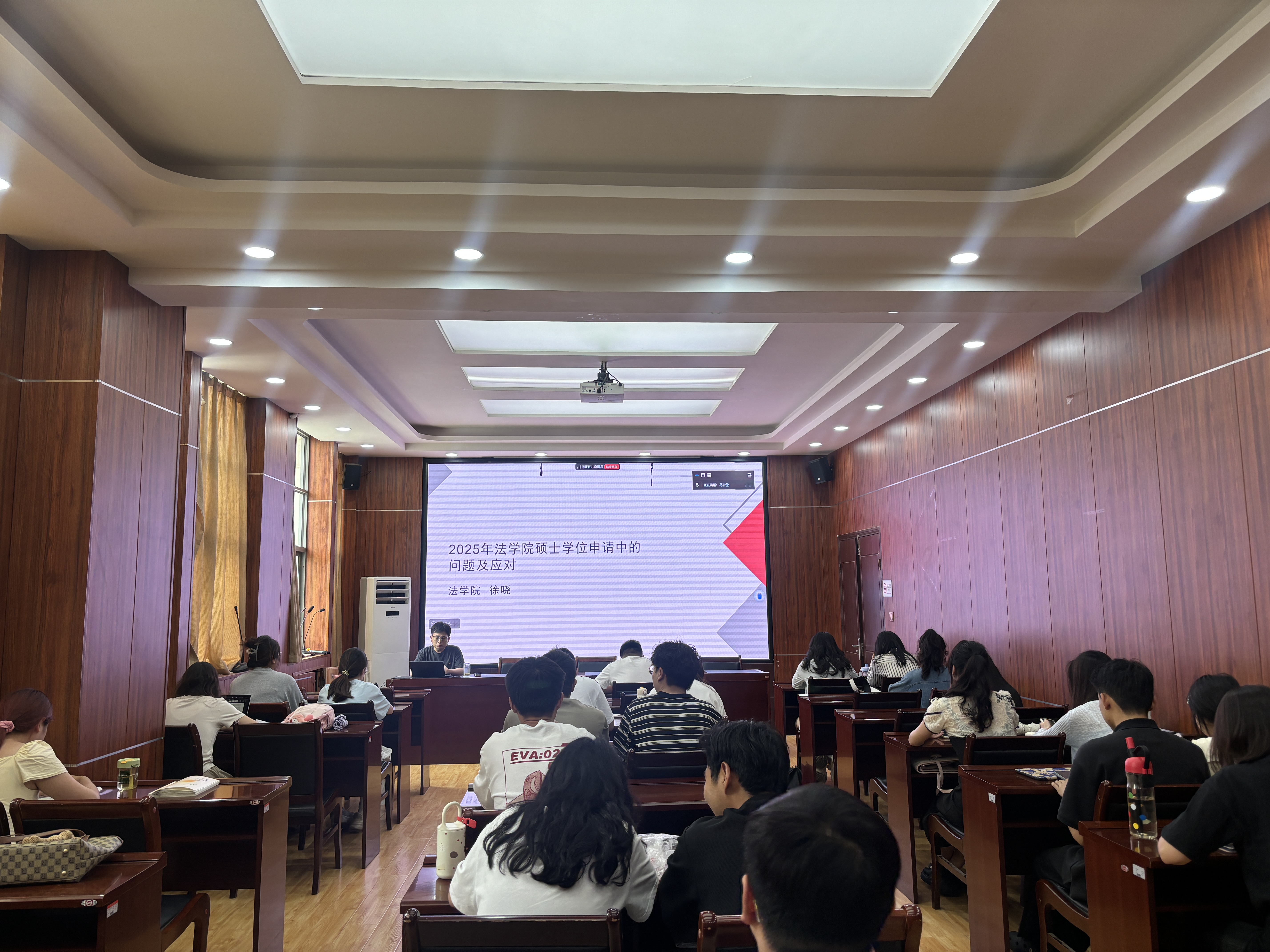 6月18日下午,法学院研究生会在法学院301举办第57期文化沙龙活动,徐晓老师以“2025年法学院硕士学位申请中的问题及应对”为主讲,2023、2024级研究生参加。