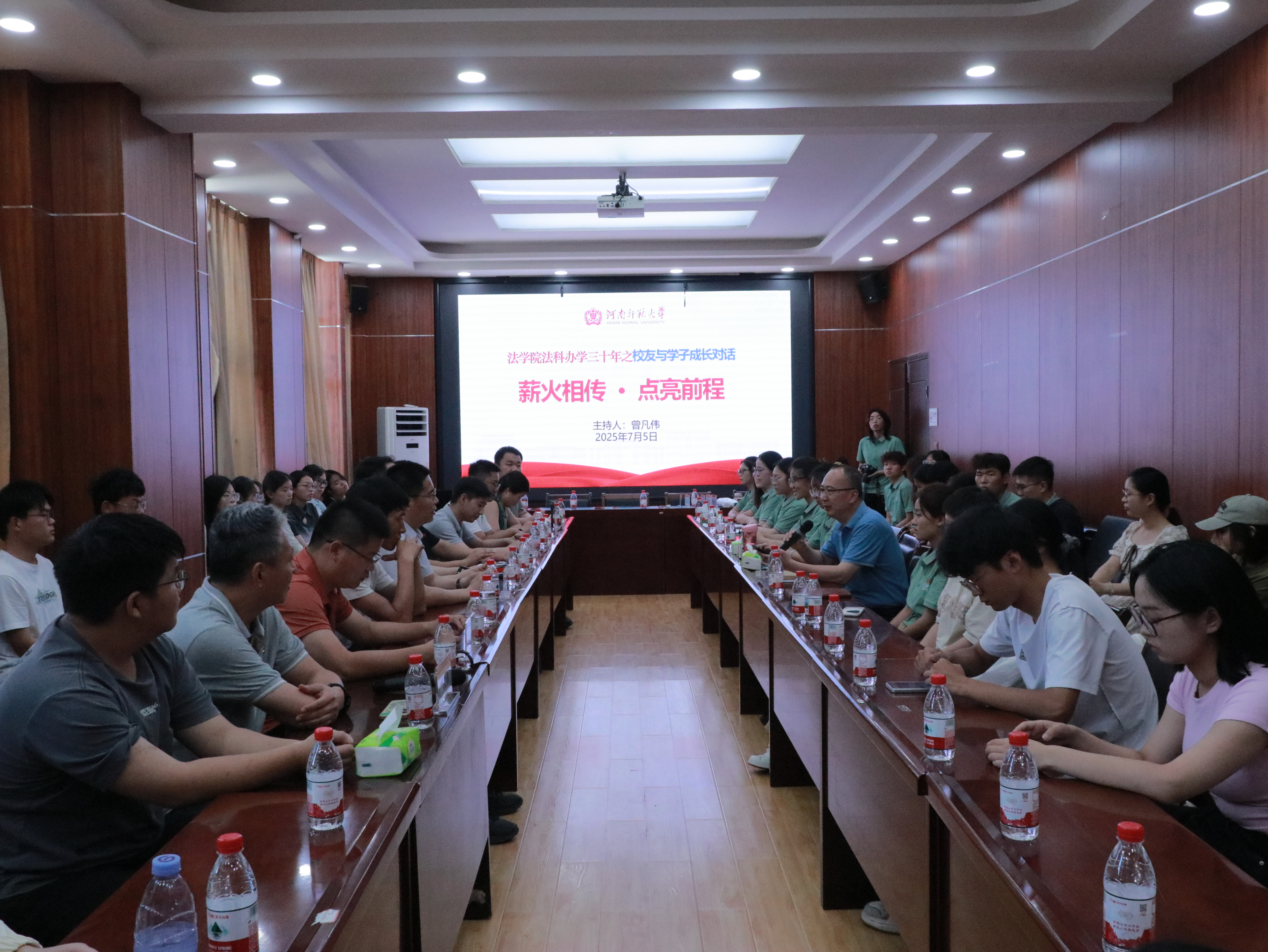 7月5日下午,法学院法科办学三十周年之“薪火相传·点亮前路”校友与学子成长对话活动在崇法楼301会议室举行。来自全国各地司法部门、律所、学校等行业的校友代表,在校学生代表欢聚一堂,共叙情谊。本次活动由1999级在院工作教师曾凡伟主持。