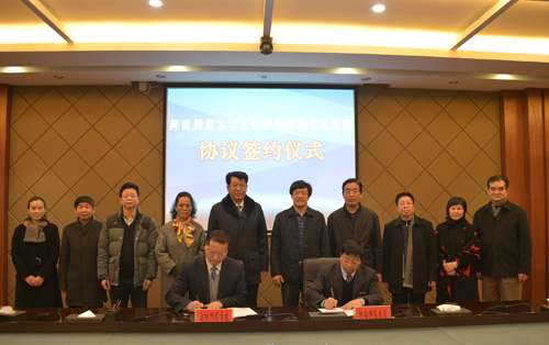 签约仪式上,河南师范大学校长常俊标和安阳师范学院校长黑建敏共同签署了《河南师范大学支持安阳师范学院发展协议》。双方决定积极探索和完善两校间开展战略合作、协同创新的体制机制和模式,在师资队伍和高层次人才培养、优势学科建设、科学研究、人才培养等领域寻找精准合作点,加强对口交流与合作。