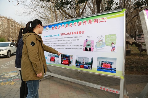 为响应国际社工日宣传周的号召,传递社工文化,由我院主办,社会工作协会承办的社工文化节系列活动在校内外全面展开。本次活动面向我校全体师生、职工家属和新乡市居民。