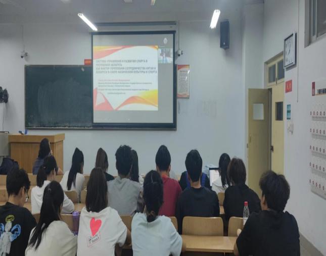 作为白俄罗斯国立体育大学的代表,Kastseyeva Natallia以其丰富的学术和实践经验,为学生们带来了深入浅出的讲解。首先,Kastseyeva Natallia介绍了白俄罗斯的生活常识,以及可能在跨文化环境下遇到的挑战和困境。随后,她着重分析了白俄罗斯体育的现状,并探讨了中白两国在体育领域的交流与合作;最后,她详细讲解了白俄罗斯国立体育大学的管理体系以及学习系统。