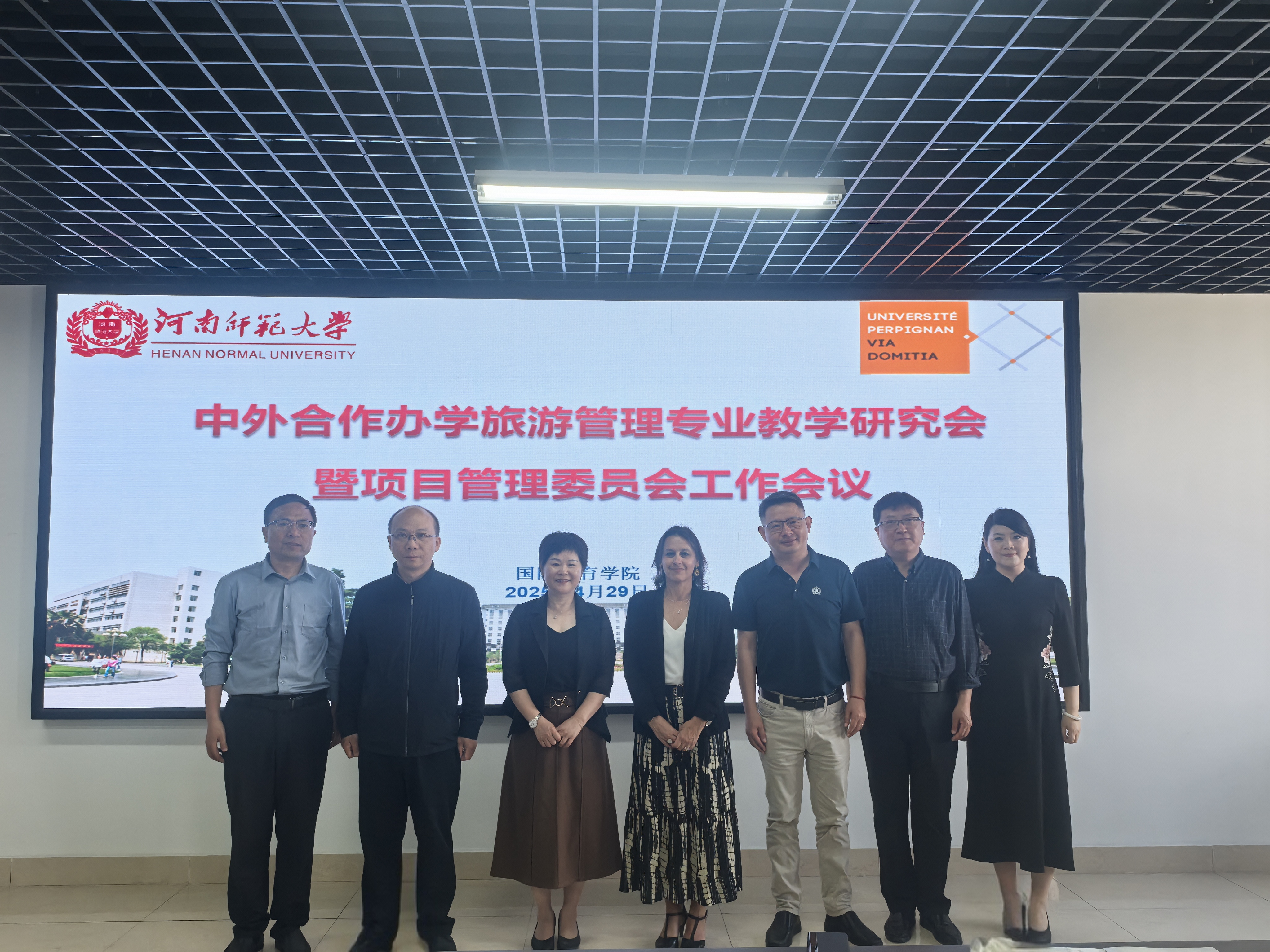 4月29日,中外合作办学旅游管理专业教学研究会暨2025年度硕士项目管理委员会会议在国际教育学院会议室举行。河南师范大学副校长宋晔出席会议并致辞,国际教育学院党委书记田小勇、院长董海、副书记白丽、副院长刘海涛,法国佩皮尼昂大学企业管理学院院长Fabienne VILLESEQUE-DUBUS、项目教学负责人Qibin Liang以及双方项目管理团队共同参加了本次会议。会议由董海主持。