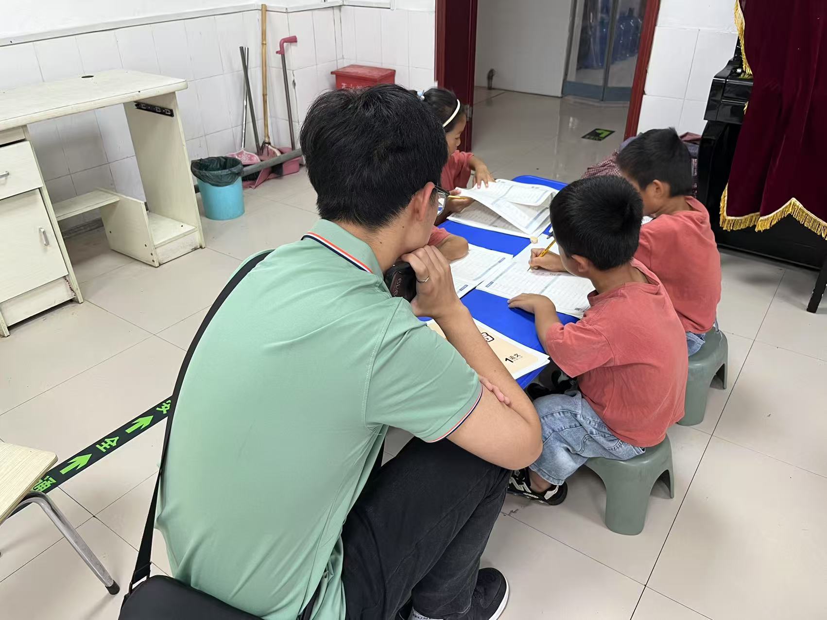 活动现场,追光青年团队将精心制作的手工艺品布置在儿童宿舍,色彩斑斓的剪纸、憨态可掬的黏土装饰画错落装点,原本朴素的空间瞬间充满童趣与温馨。最令人动容的是“手掌画”互动环节:团队成员引导孩子们拓印手掌轮廓,在画作上写下“愿你永远向阳生长”“勇敢追逐梦想”等暖心寄语;孩子们则用稚嫩的笔触,歪歪扭扭地写下“谢谢哥哥姐姐”“祝哥哥姐姐学业有成”,虽字迹青涩,却饱含纯真与感激。