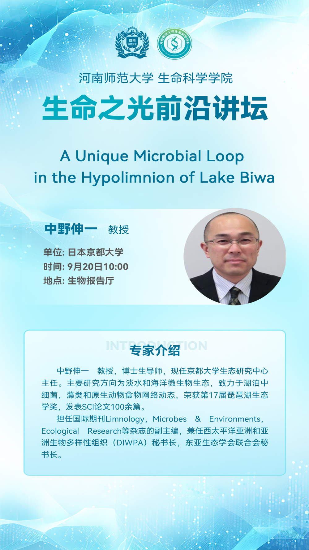 学术预告-- 日本京都大学Nakano Shinichi(中野伸一)教授将应邀做客生命之光前沿讲坛
