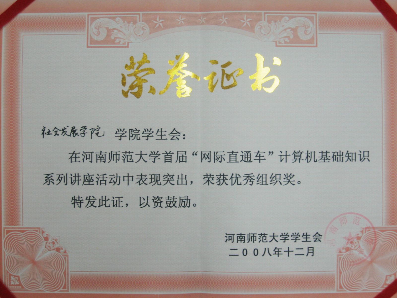 “网际直通车”计算机基础知识系列讲座活动荣获优秀组织奖