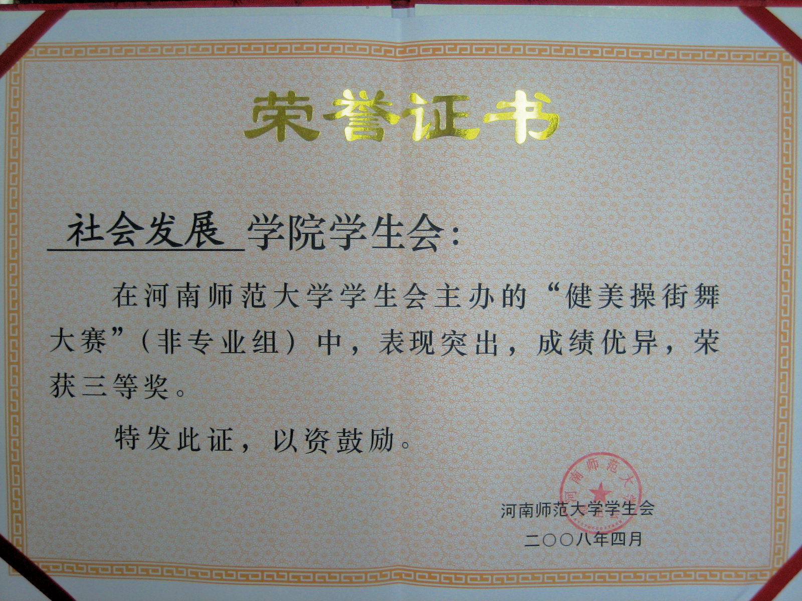 社会发展学院在河南师范大学“健美操街舞大赛”中荣获三等奖