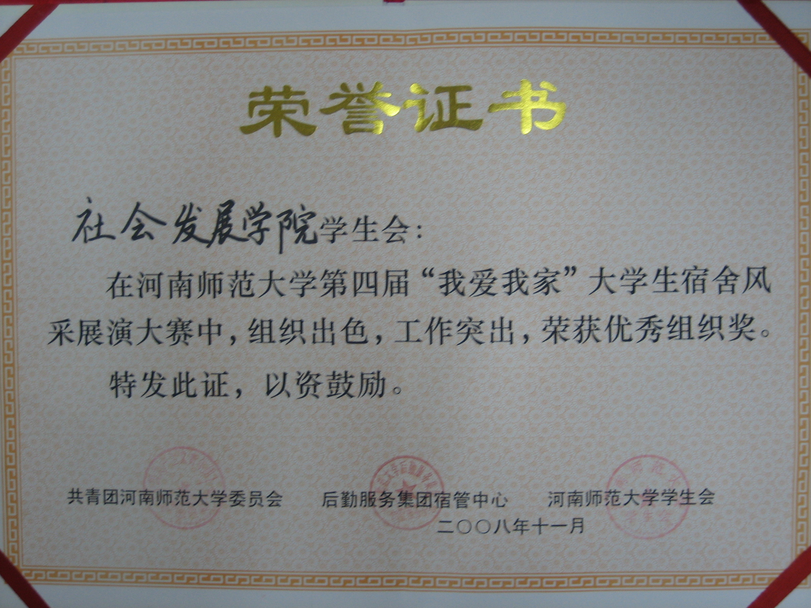 “我爱我家”大学生宿舍风采展演大赛中荣获优秀组织奖