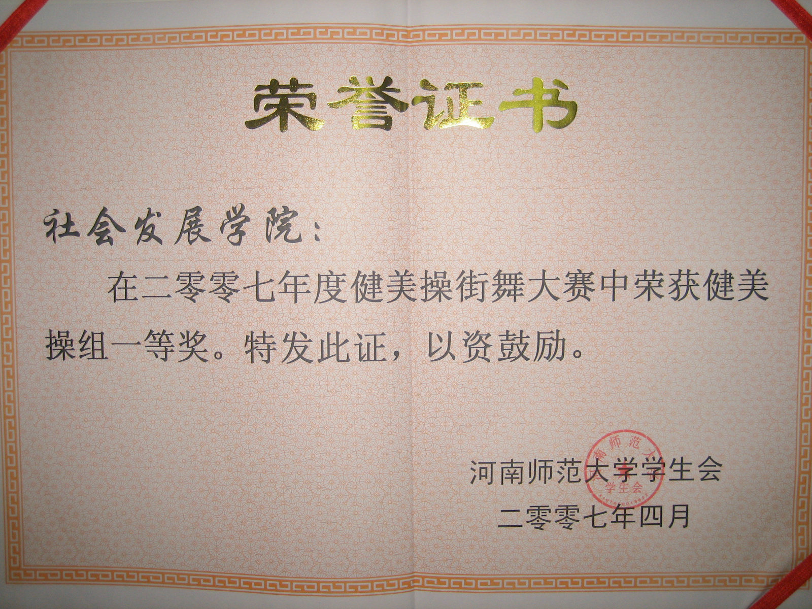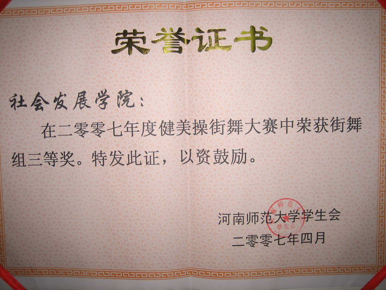 社会发展学院荣获二零零七年大学生基本技能竞赛演讲赛团体一等奖