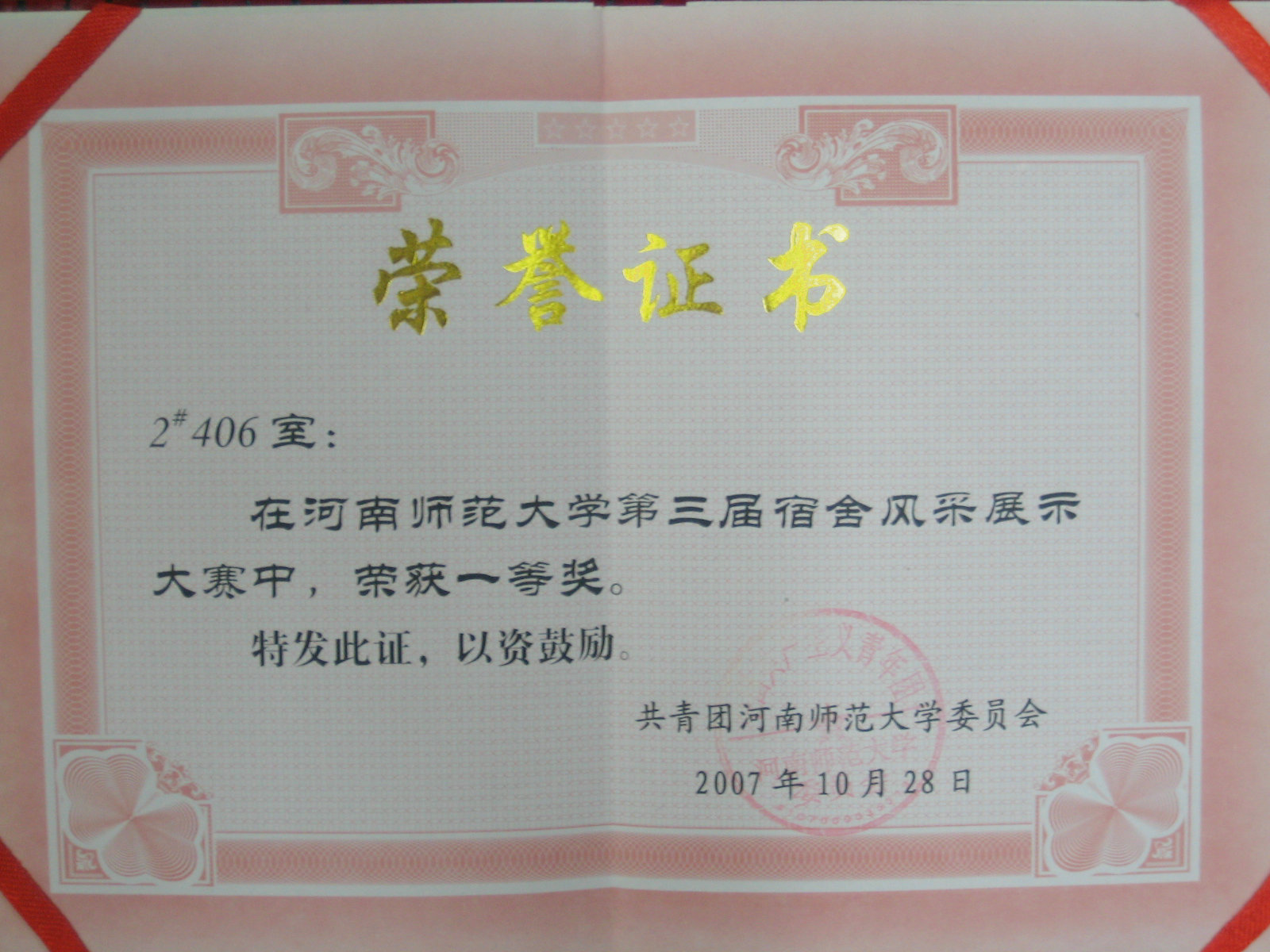 2#406室在河南师范大学第三届宿舍风采展示大赛中荣获一等奖