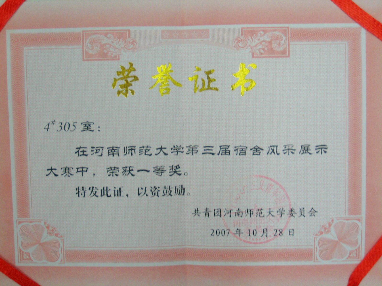 4#305室在河南师范大学第三届宿舍风采展示大赛中荣获一等奖
