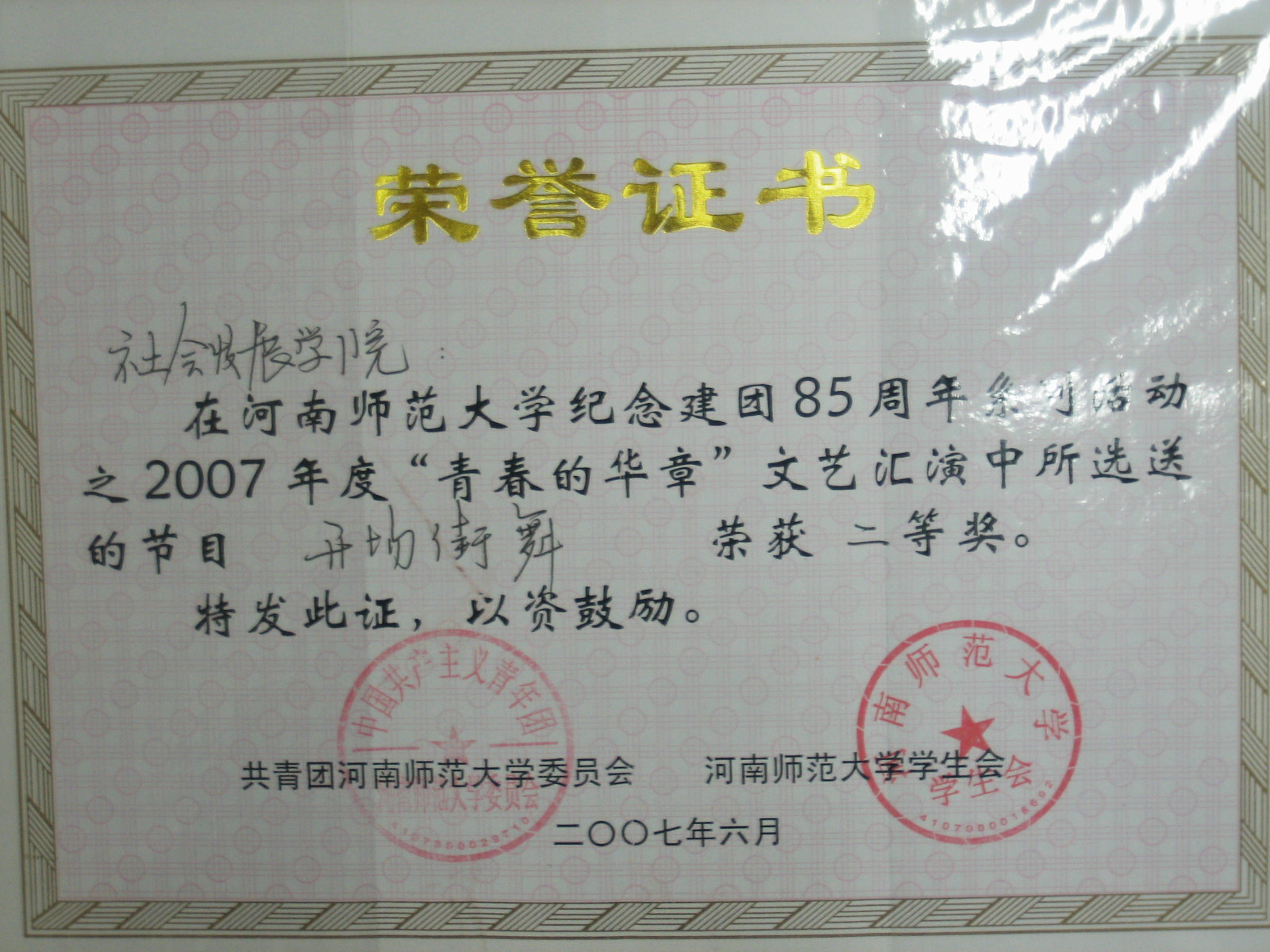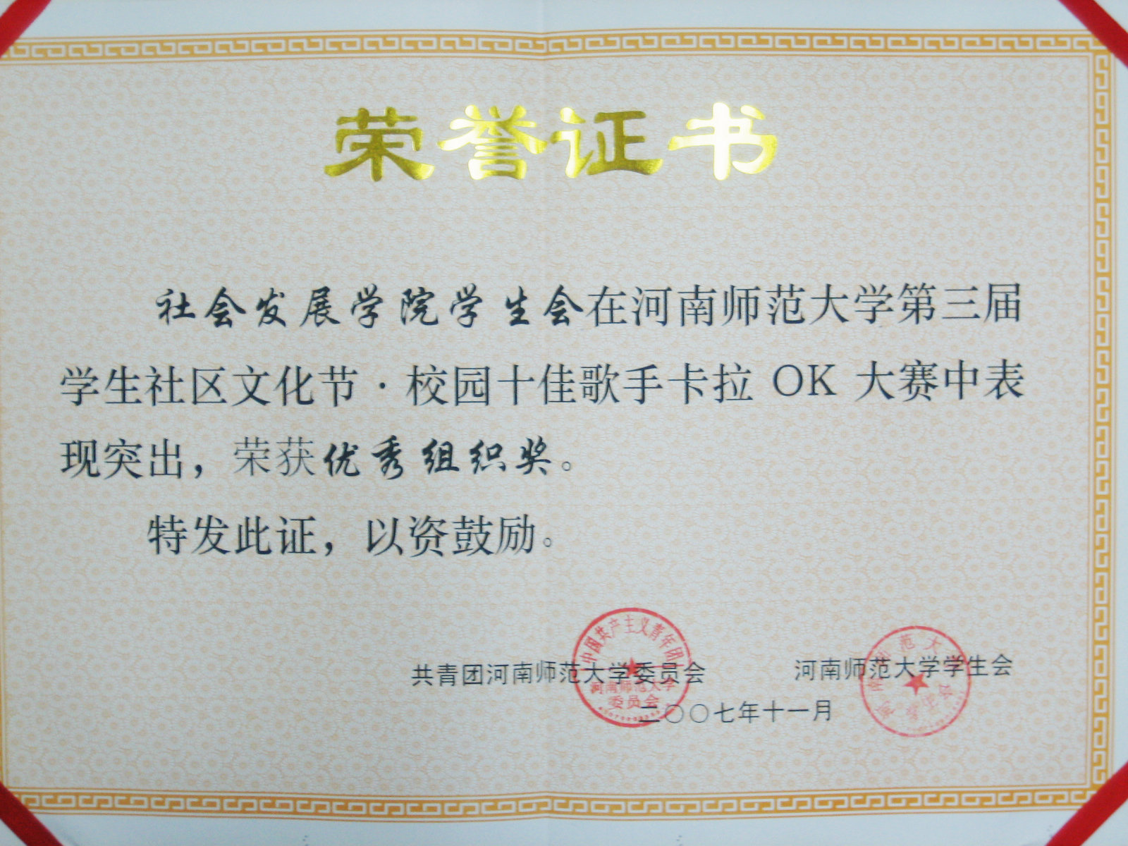 第三届学生社区文化节・校园十佳歌手卡拉OK大赛中荣获优秀组织奖