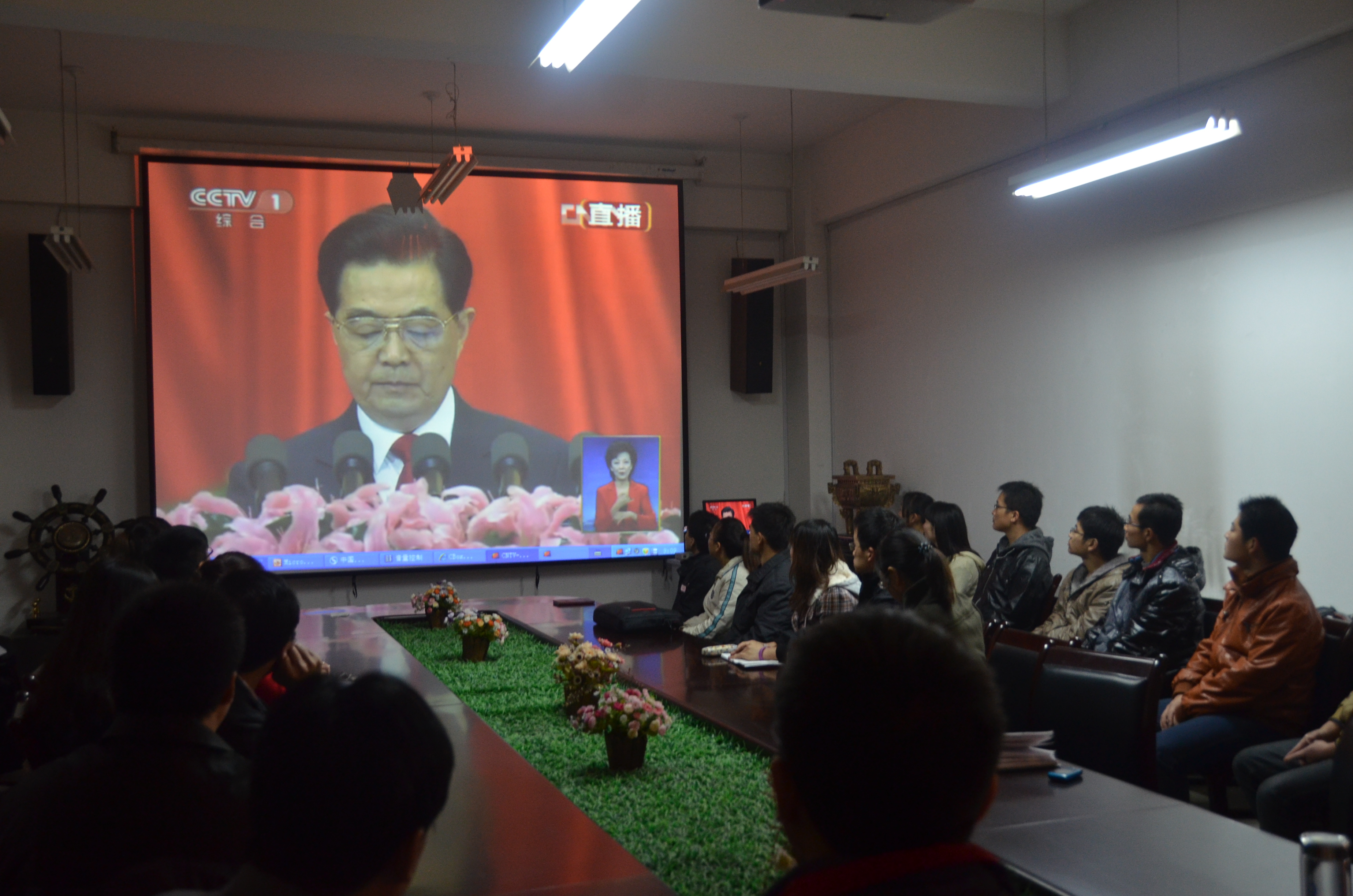 全体人员仔细听取了胡锦涛总书记代表十七届中央委员会向大会作的报告,并认真做好笔记,学习领会报告精神。此次收看活动为历史文化学院学习贯彻十八大精神系列活动组成部分,学院将继续深入学习领会十八大精神,增强政治意识、大局意识和责任意识,切实把广大党员干部群众的思想统一到十八大精神上来。
