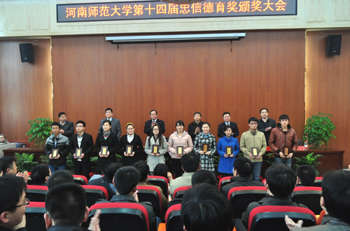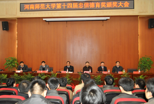 11月16日上午,河南师范大学第十四届“忠信德育奖”颁奖大会在东区B楼302教室举行。台湾忠信文教基金会董事长苏龙德先生专程从台湾赶来参加此次颁奖仪式。校党委副书记、工会主席王海旺出席颁奖大会并讲话。校港、澳、台事务办公室、就业指导服务中心、校团委负责人以及忠信德育奖评审委员会其他各位委员,各学院学生工作负责人、团委书记,党委学工部工作人员、学生代表等参加了颁奖大会。大会由党委学工部部长、学生处处长张向战主持。