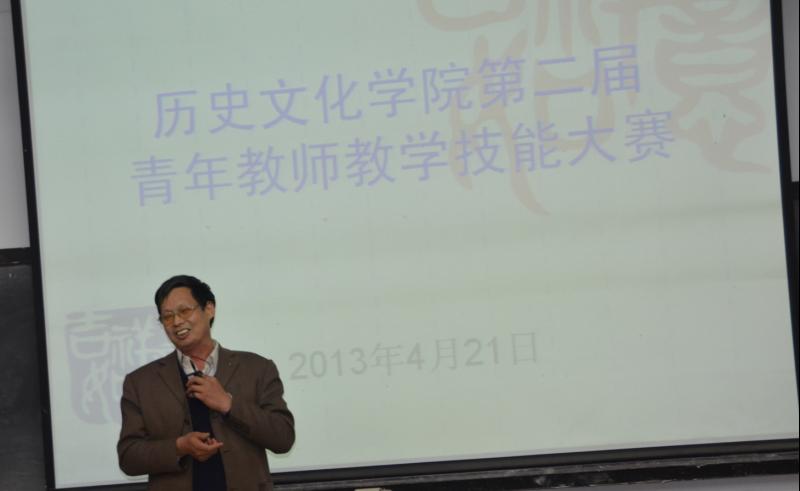 2013年4月21日,阶梯楼208教室座无虚席,历史文化学院第二届青年教师教学技能比赛于此举行。
