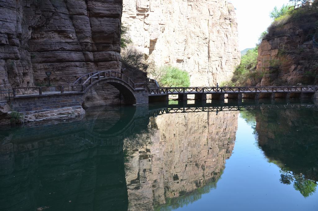 一剑劈山现幽谷,游人驻足疑江南;南有神佛佑山寨,北有一柱擎半天;东侧脚掌仙人印,西邻一峰拇指赞;双狮卧太行,神斧立山巅;景区开发遍田园,保护就是大发展。