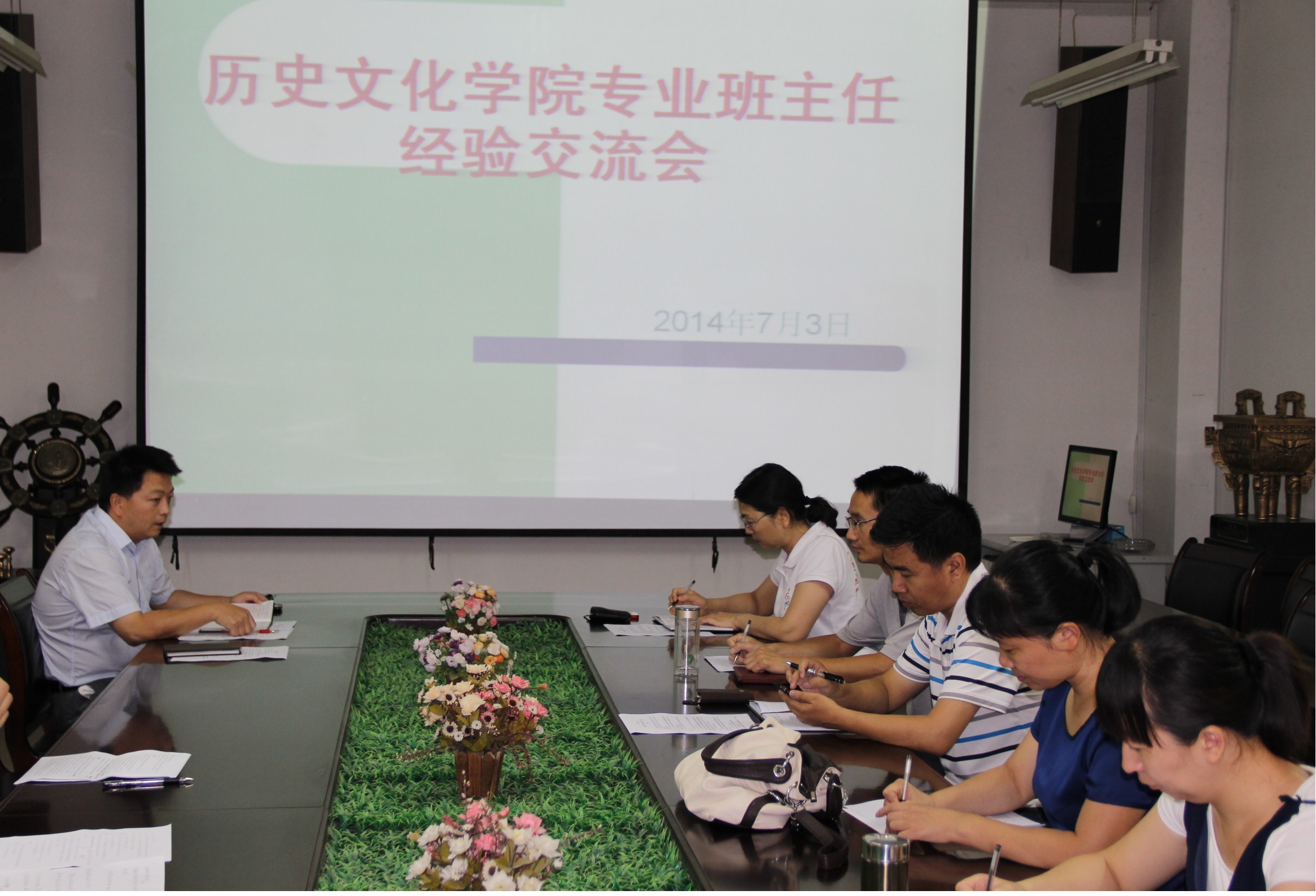 2014年7月3日上午,历史文化学院在学院二楼会议室举行专业班主任经验交流会。