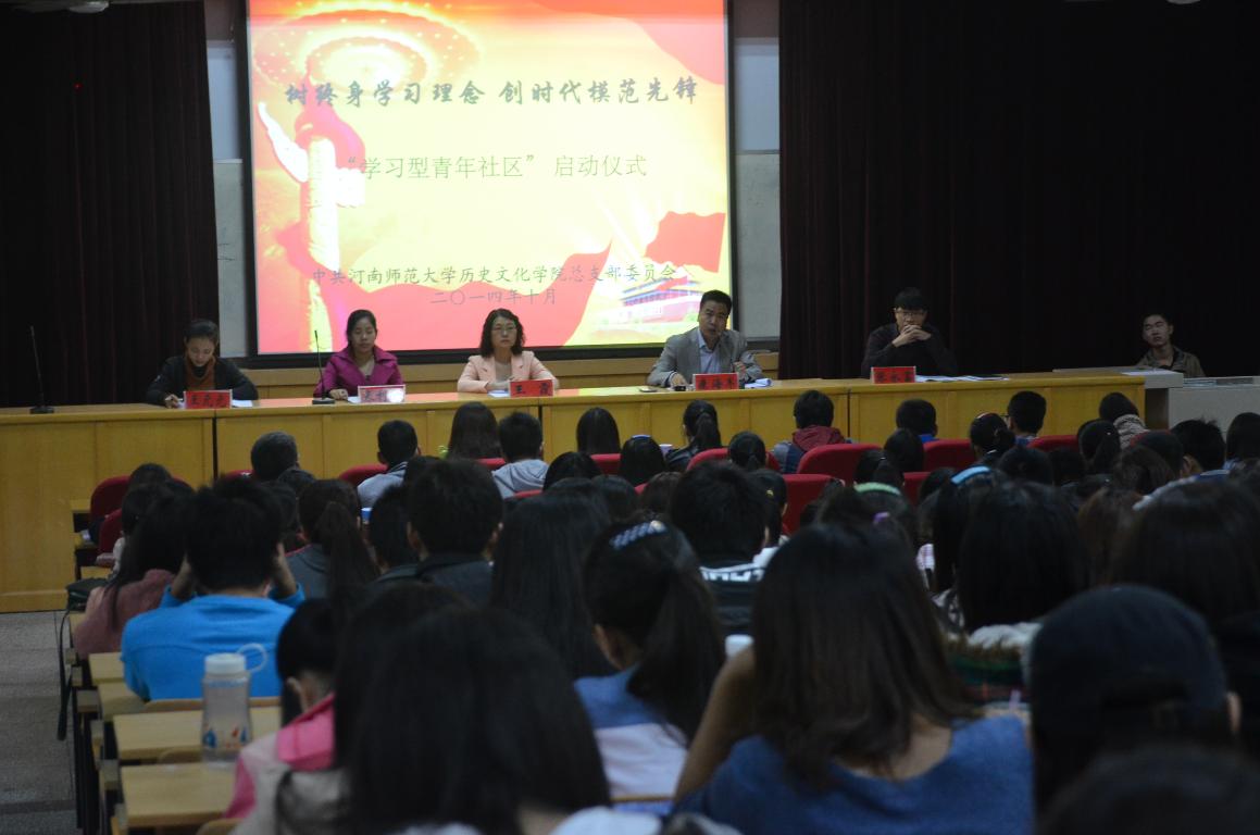 树终身学习理念,创时代模范先锋。10月19上午,历史文化学院党总支在新五五四教学楼102室召开了“学习型青年社区”党员示范引领工程工作会议。院党总支书记王霞,团委书记张利兵、2013级辅导员张永富、王元元及300多名同学参加了此次会议,会议由康海军老师主持。