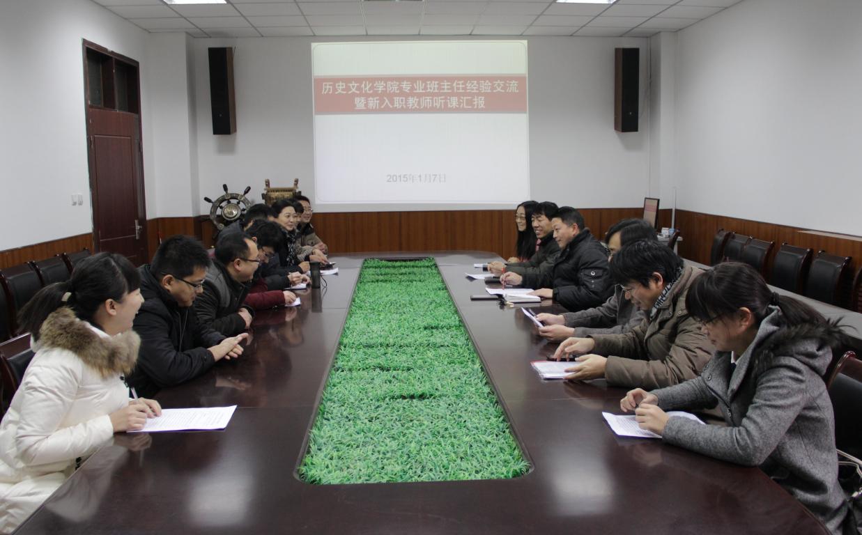 201517日上午,历史文化学院专业班主任经验交流暨新入职教师听课汇报会在学院二楼小会议室进行,会议由鞠明库副院长主持,2014年新入职的4位教师及2013级、2014级的专业班主任参加会议。