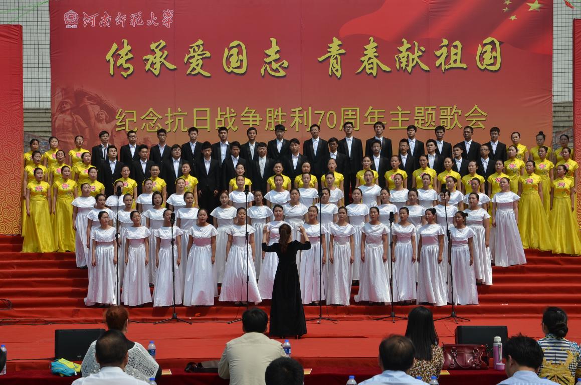 4月25日上午,由我院2014级90多名学生组成的合唱团在图书馆广场参加学校“传承爱国志,青春献祖国”纪念抗日战争胜利70周年主题歌会,取得了一等奖的好成绩。