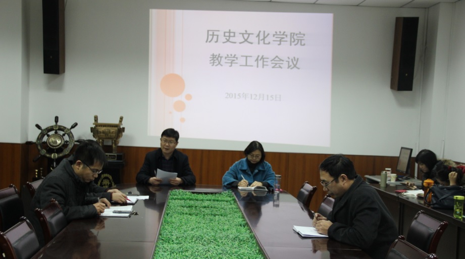 2015年12月15日下午,历史文化学院教学工作会议在学院二楼小会议室举行,会议由王霞书记主持,全院老师出席会议。
