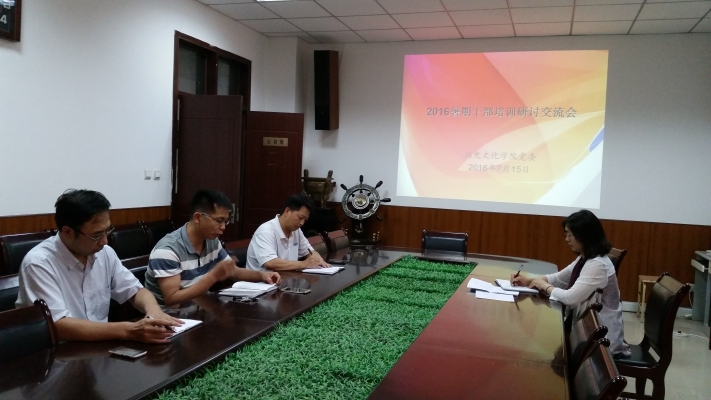 7月15日下午,在学院二楼会议室,学院党政班子成员就2016暑期处级干部培训召开专题交流研讨会。院党委书记王霞主持会议。