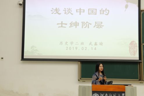 本次活动由王若茜老师发起,历史学专业学生均可自愿报名参加。“学子讲堂”第一节由历史二班武鑫瑜主讲,她以“浅谈中国的士绅阶层”为主要课题,针对不同方面向大家进行讲述分析。随后,由同学们提出相应问题,“乡绅与乡贤有何区别?”“优绅与劣绅差别在于文化水平还是道德水平?”他们各抒己见,共同进行探讨。活动最后,由王若茜老师作出对课堂的评价,并提出课堂内容与形式上的相关建议。本次讲堂活动氛围良好,收获颇多。